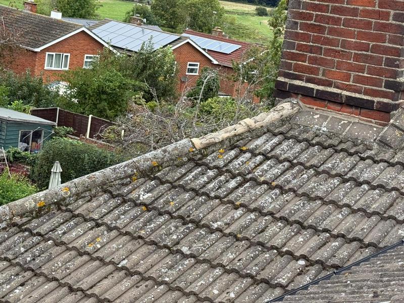 This project in Witham addressed an ageing and weathered roof that was showing significant signs of wear and tear, including moss growth, slipped tiles, damaged felt, and deteriorating chimney flashing. The main goal was to carry out targeted repairs to key areas in order to restore the roof’s structural integrity, ensure it was fully watertight, and prevent future damage.