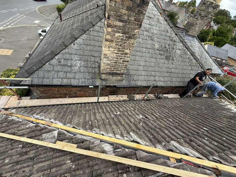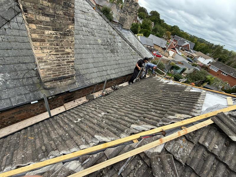- The first step was to carefully strip back the old, damaged tiles and remove the rotten felt and battens. This process revealed the extent of the underlying damage and prepared the roof for a full structural repair, ensuring a solid foundation for the new materials.